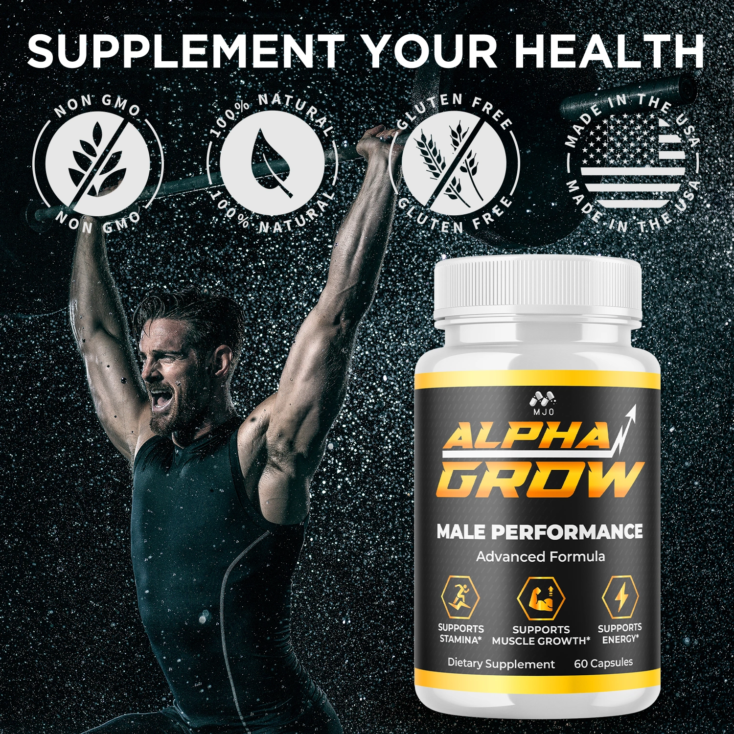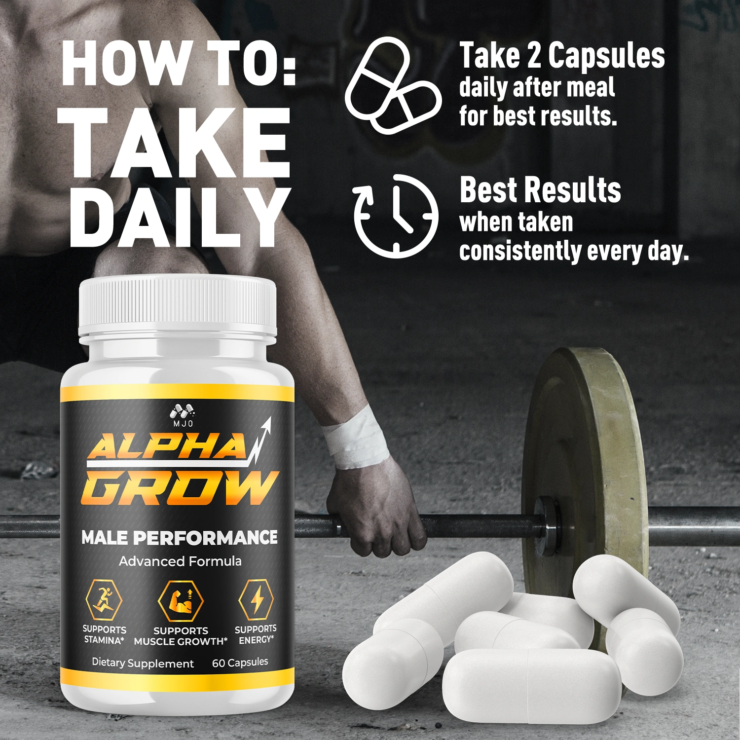 Alpha Grow Capsules are a premium sports nutrition supplement designed to support blood flow and athletic performance. With a blend of natural ingredients, it aims to enhance endurance, vitality, and overall well-being. Ideal for athletes and fitness enthusiasts, it helps you strive for peak physical performance and to maintain an active lifestyle. Please consult a healthcare professional before use.