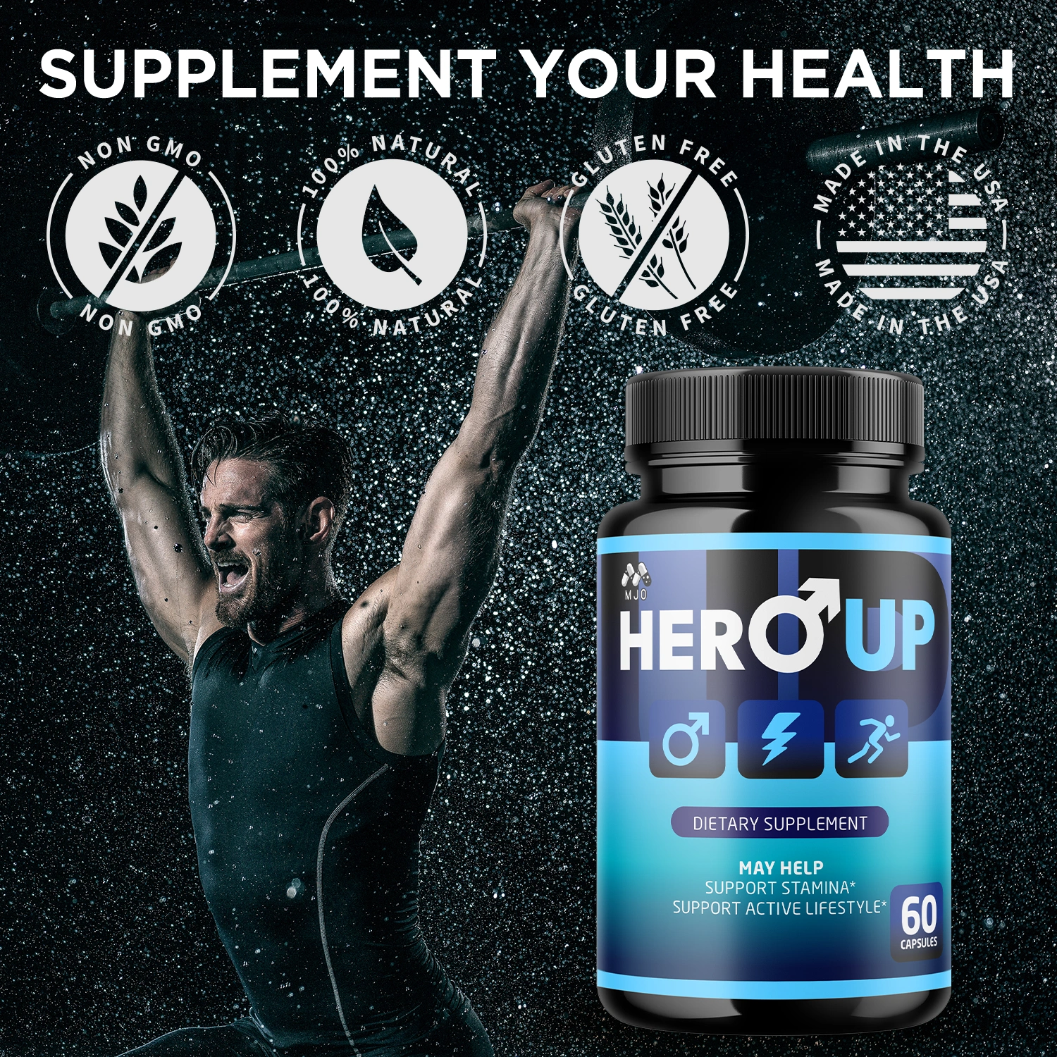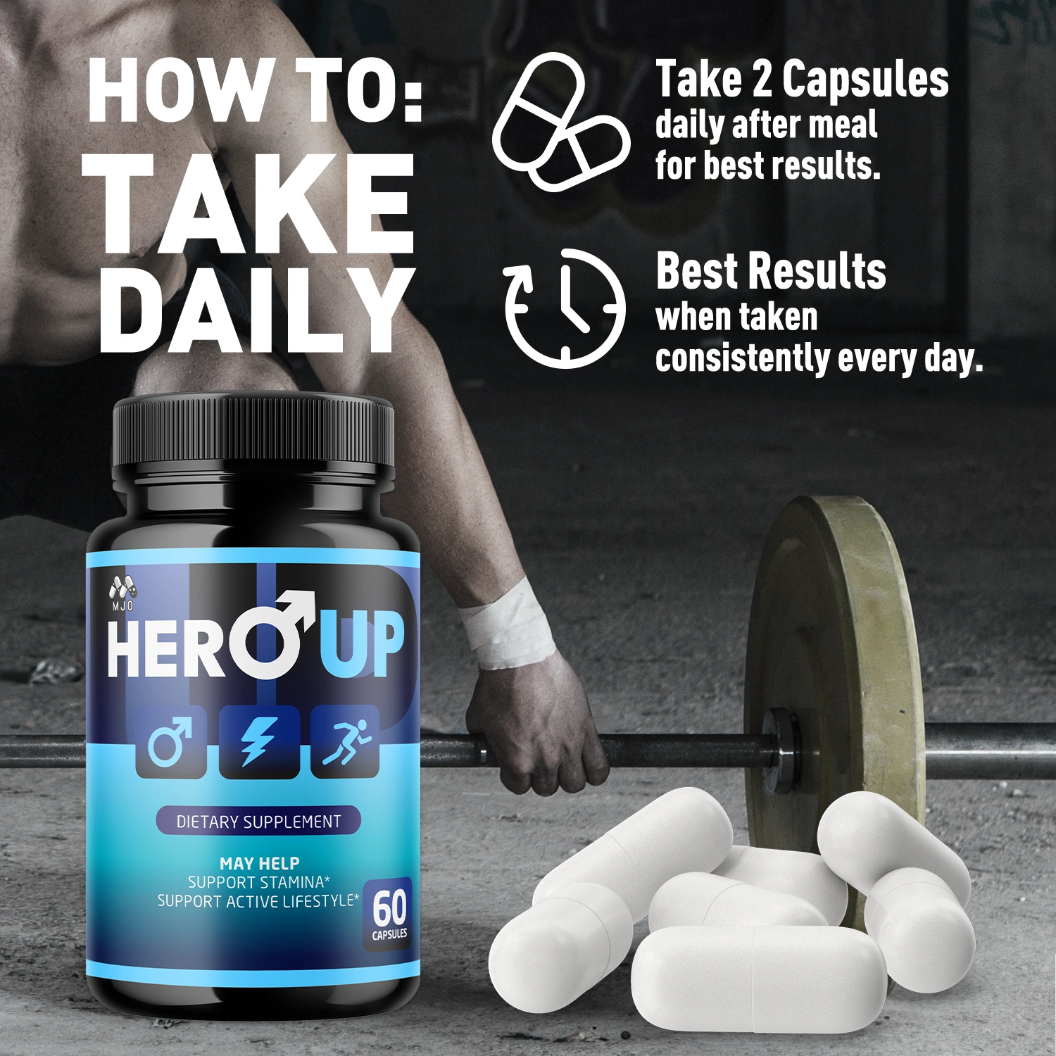 Hero Up Capsules are a premium sports nutrition supplement designed to support blood flow and athletic performance. With a blend of natural ingredients, it aims to enhance endurance, vitality, and overall well-being. Ideal for athletes and fitness enthusiasts, it helps you strive for peak physical performance and to maintain an active lifestyle. Please consult a healthcare professional before use.