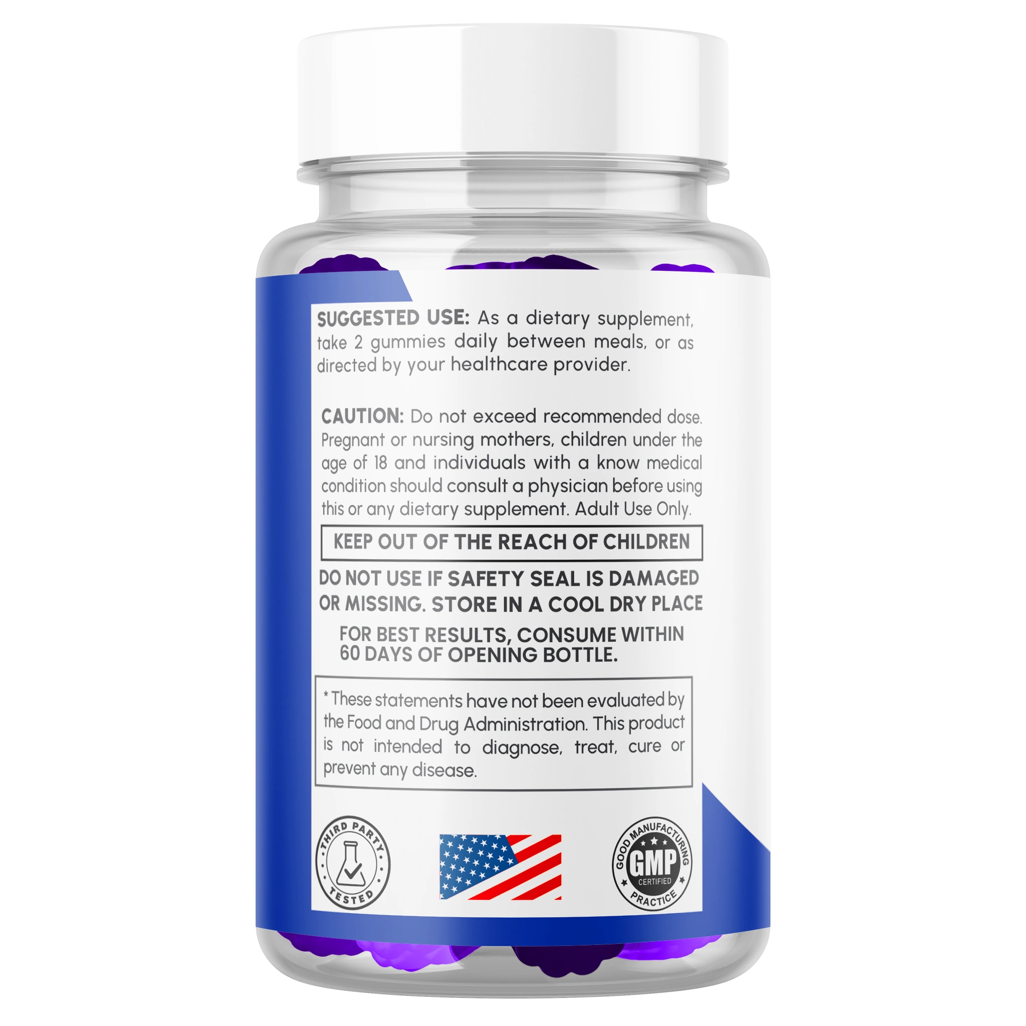 For optimal results, take two (2) gummies in the morning before breakfast and a second before lunch.
